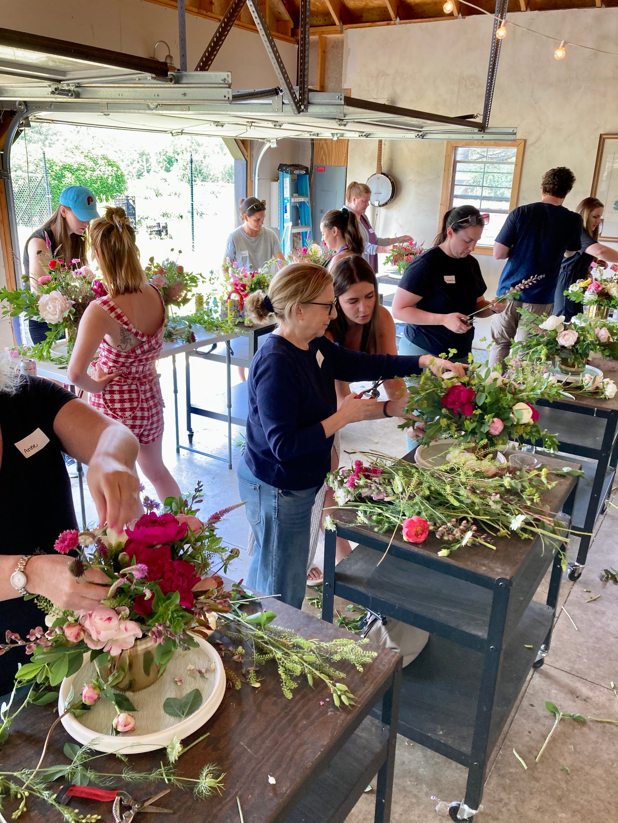 Peonies! Big, billowy, fragrant peonies are the star of this workshop! Late May is peak season, and we’ll dive headfirst into creating gorgeous romantic “overgrown” arrangements heaped full of peonies. Of course there will be a host of floral supporting characters, such as baptisia, campanula, snapdragons, nigella, bachelor buttons, agrostemma, and more! Walk around the farm to enjoy the tranquility of nature and to gather a few special blooms. Learn how to craft a loose, lush, “earthy elegant” arrangement that is the signature look at Love ‘n Fresh Flowers.